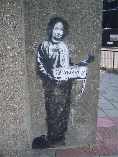 Banksy Hitchiker to Anywhere Graffiti - Archway, London