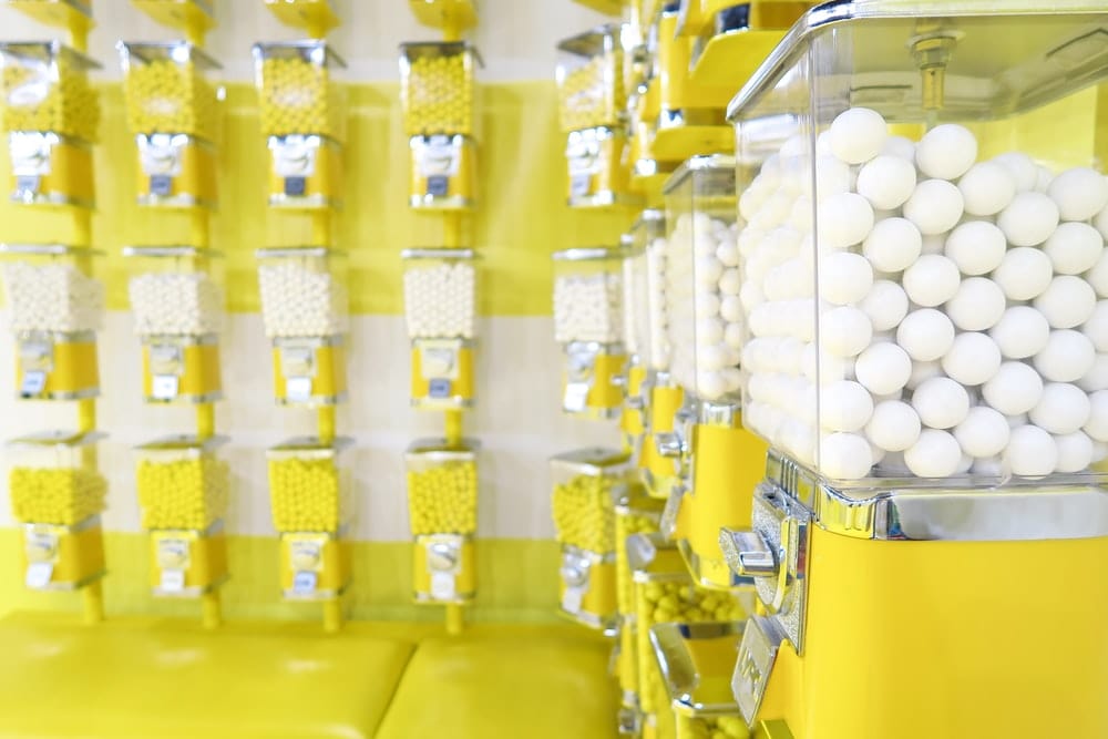 Paint By Numbers | Yellow candy dispenser filled with white candies