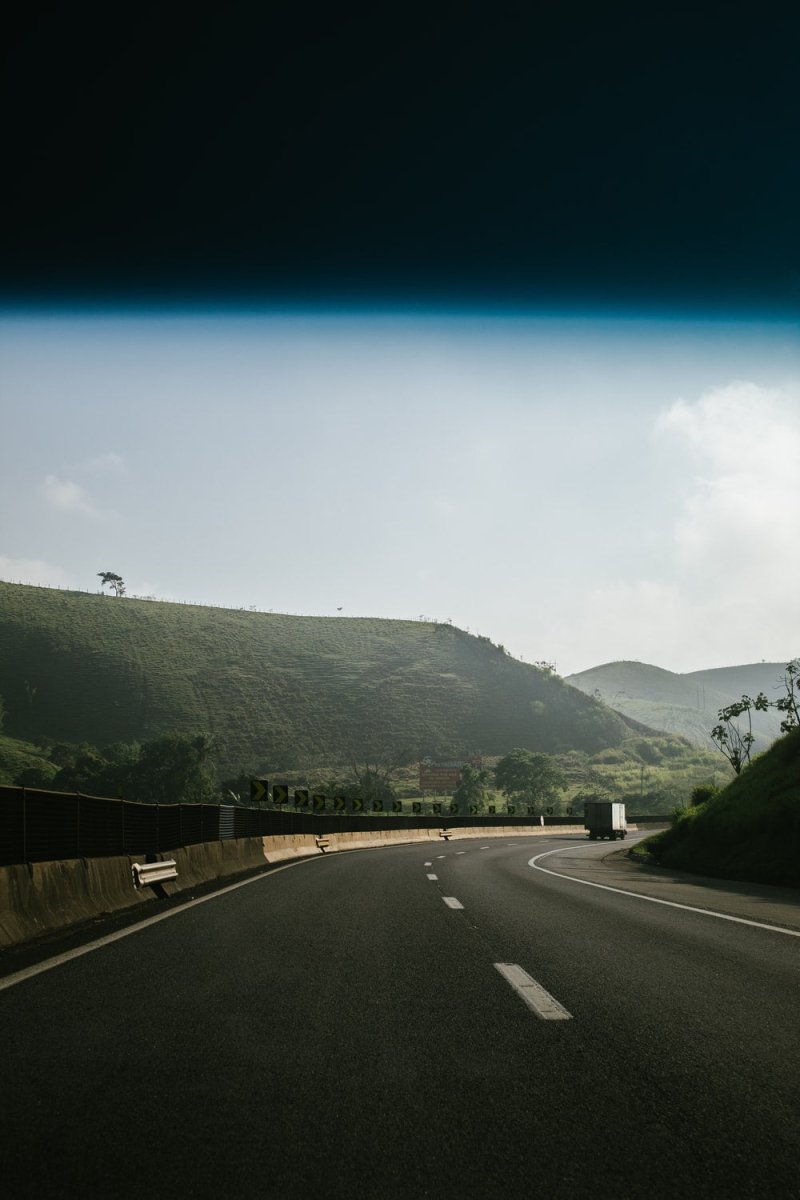 Paint By Numbers | Black Asphalt Road Between Green Mountains