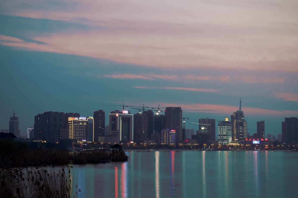 Paint By Numbers | Zhenjiang - City Skyline Near Body Of Water During Night Time