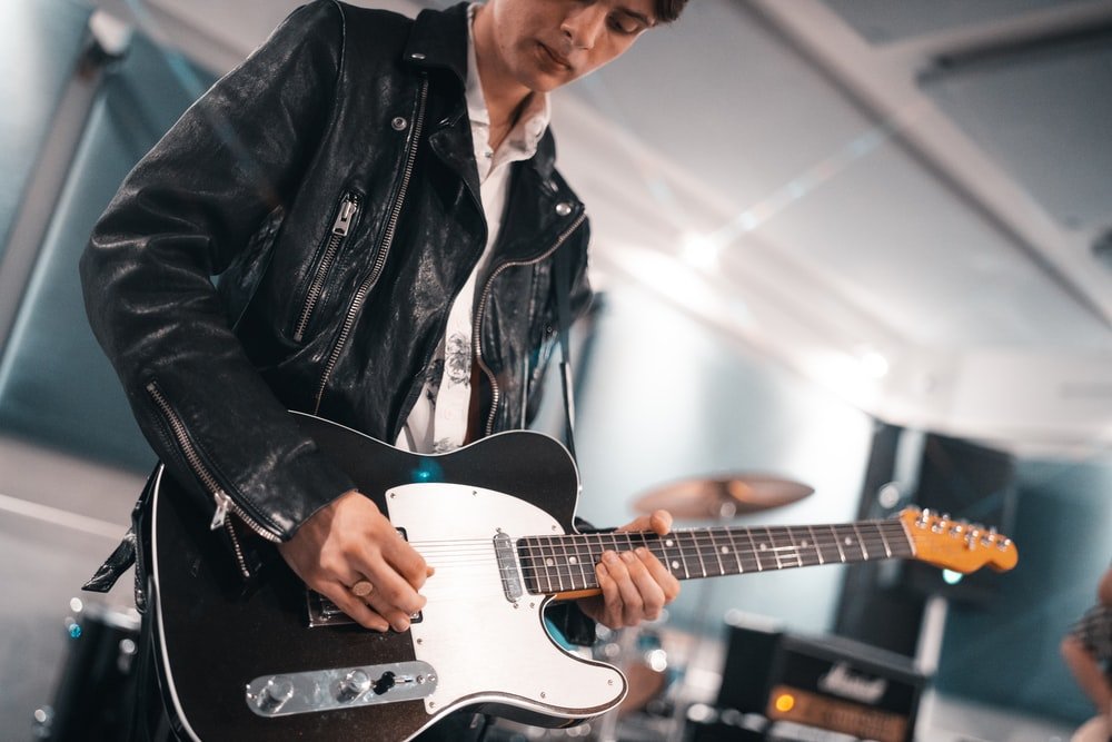 Paint By Numbers | Bass - Man In Black Leather Jacket Playing White Electric Guitar