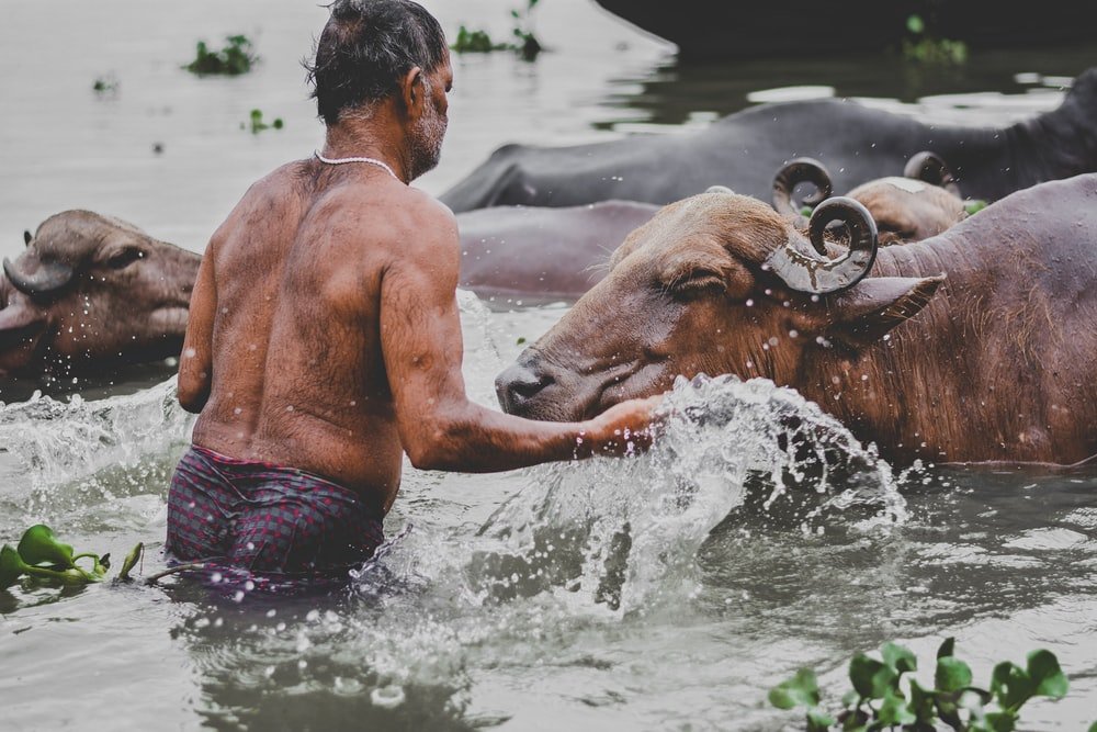 Paint By Numbers | Ox - Person On Body Of Water Surrounded With Buffaloes